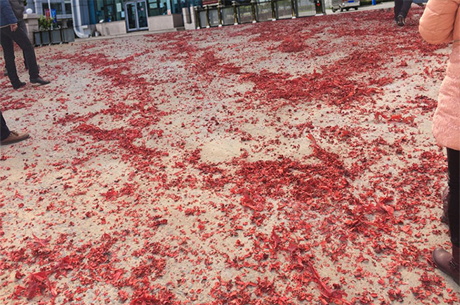 放鞭炮,火红的炮花预示着新的一年红红火火,我们正式开始上班啦!